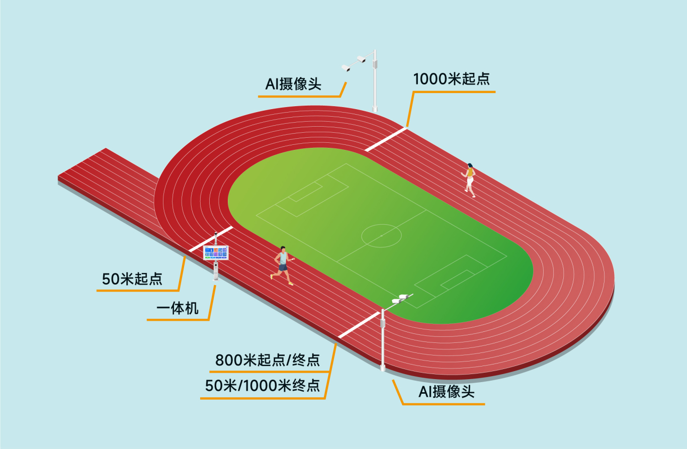 与传统跑道不同,在体优“AI智慧操场”上,不再需要体育老师逐一为学生计时。操场四周安装了多组AI视觉传感器,构建了一个全天候运行的“智慧天眼”系统。从50米体测的起点到终点,系统能够精准捕捉每一个动作细节,实现运动数据的毫米级精确识别。