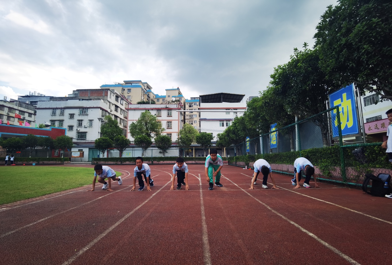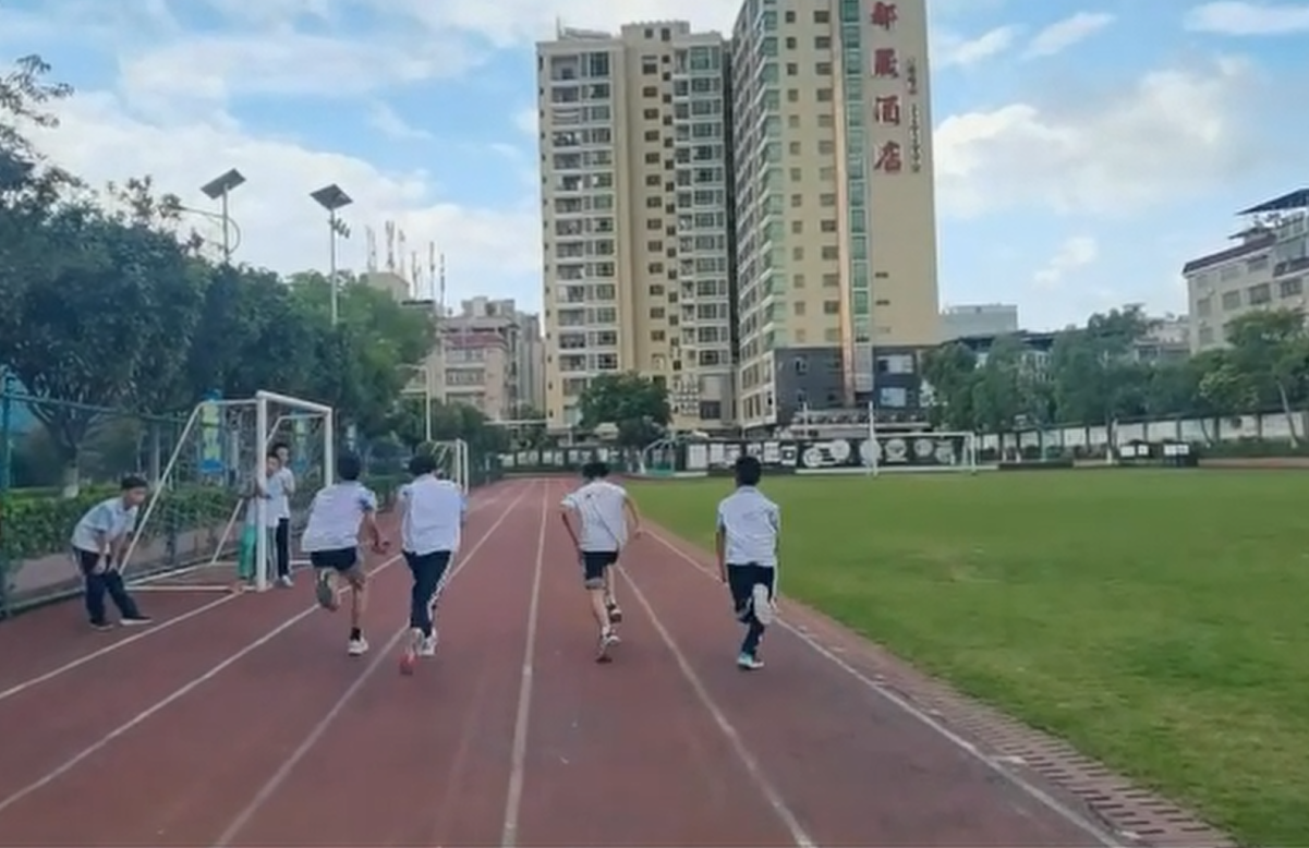 “各就位!预备,跑!”随着嘹亮的指令响起,跑道上的少年们如离弦之箭般飞速地向前冲刺。操场上,汗水与激情交织,不少学生跑出了8秒左右的优异成绩,不断刷新着跑圈屏上的榜单,点燃着少年们的运动热情。
